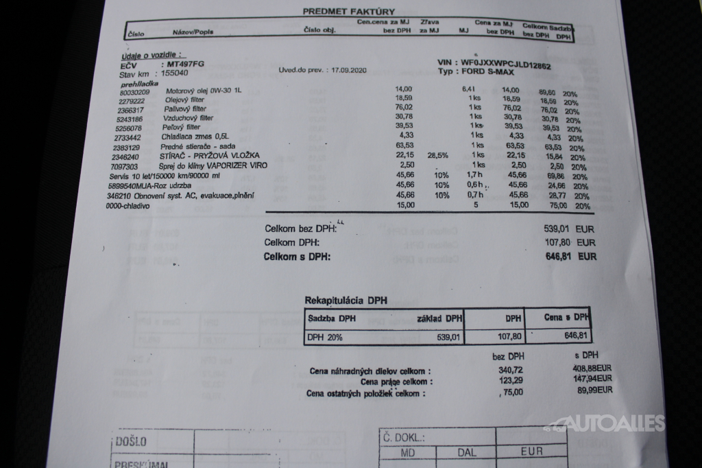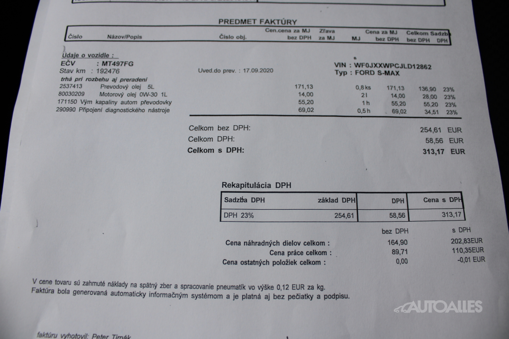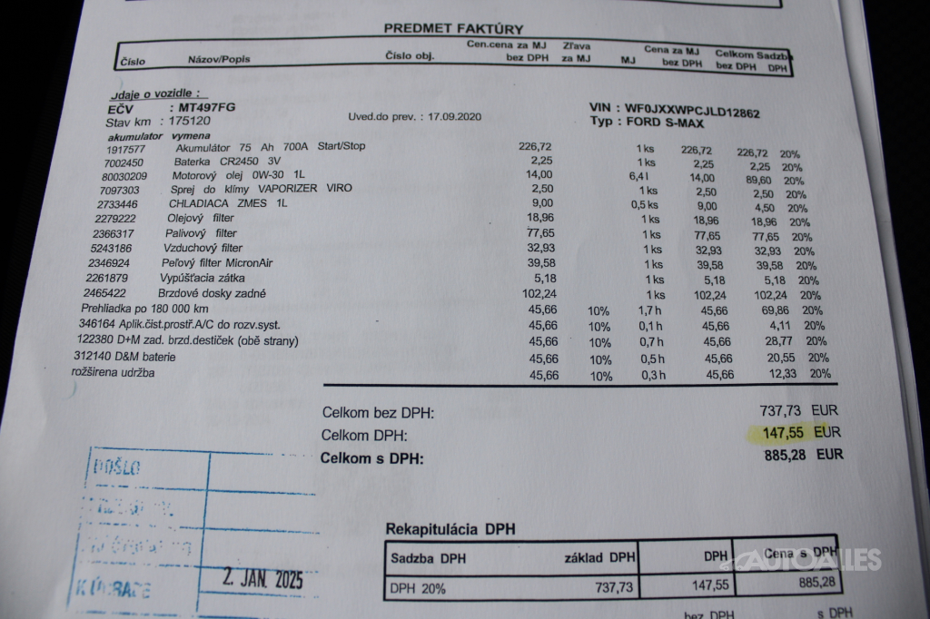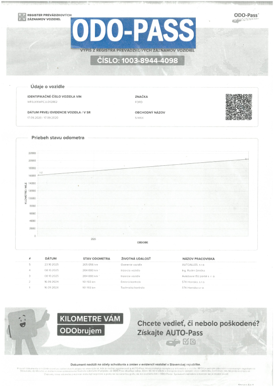 Vozidlo ako nové kupované na Slovensku / 2. Majiteľ. Skelet vozidla je nehavarovaný. Ku vozidlu je vystavený výpis zo štátneho Registra prevádzkových záznamov vozidiel - ODO-PASS, ktorý zobrazuje históriu najazdených kilometrov vozidla. Originálne najazdené kilometre si môžete overiť aj u ktoréhokoľvek oficiálneho predajcu Ford. Ku vozidlu je elektronická servisná kniha + komplet faktúry o servise. Pravidelne servisované, posledná servisná prehliadka 3.7.2025 pri 195 748 km - výmena oleja a filtrov, Výmena rozvodového ústrojenstva: 1.9.2025 pri 203 000 km, 30.5.2025 pri 192 476 km výmena oleja v prevodovke, 4/2025 pri 187 164 km výmena vstrekov (4ks), 7/2025 pri 195 748 km - menené predné brzdové platničky, 12/2024 pri 175 120 km - menené zadné brzdové platničky. Obuté letné pneumatiky na originálnych hliníkových diskoch ford 235/55 R17, v cene vozidla aj zimné pneumatiky na hliníkových diskoch 235/55 R17. Pri jazde na aute nič nebúcha ani nevibruje, podvozok a nápravy v poriadku. Karoséria a interiér vozidla v zachovalom a udržiavanom stave, s bežnými známkami používania. Automatická prevodovka radí hladko a bez trhania. 5 miestna verzia. Ku vozidlu je 2 x originál kľúč. Momentálne bez ďalšej nutnej investície, iba sadnúť a jazdiť. VIN: WF0JXXWPCJLD12862. AUTOALLES: najväčší slovenský autobazár, už od roku 1990, doživotná záruka na pôvod vozidla s garanciou vrátenia peňazí. Tešíme sa na vašu návštevu.